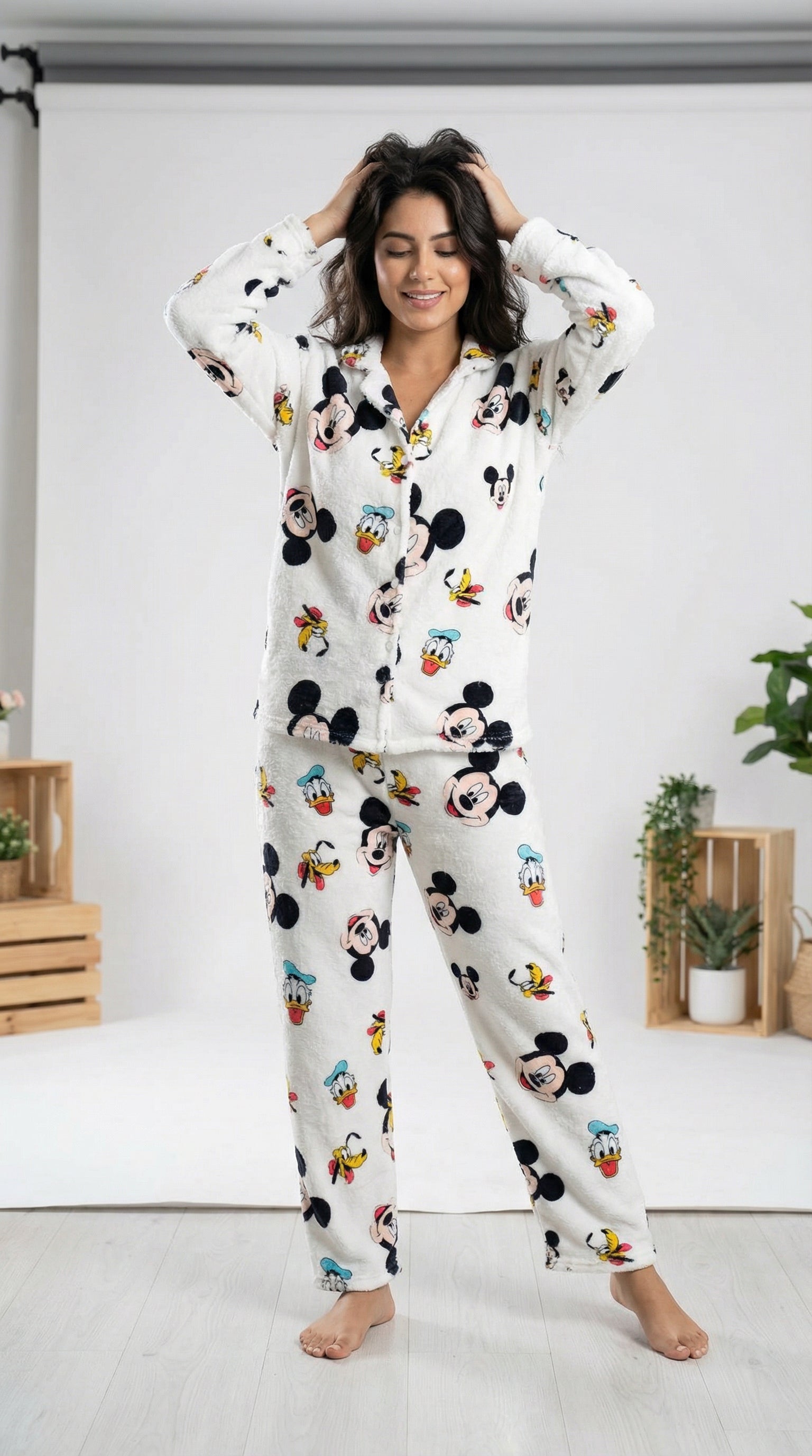White disney buttoned fur set